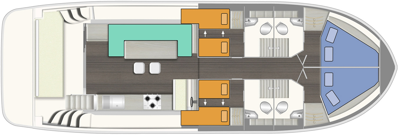 Ab 2017 wird neu das Boot SIXTO PRESTIGE C (4+2), 13.50m x 3.80 m, die Flotte der Nicols ergänzen. Es handelt sich um ein Boot der Klasse „Estivale“ und verfügt über 2 Schlafkabinen für je 2 Personen.